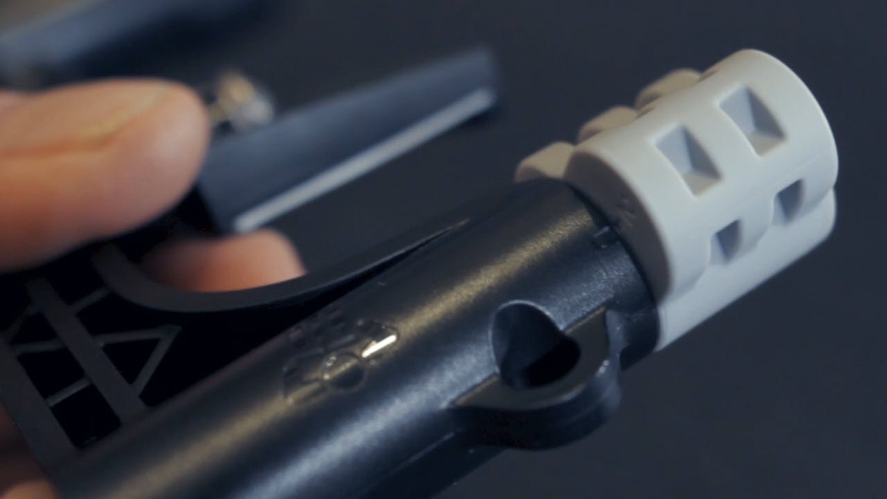 stored in the rubber pin holder inside the handle.